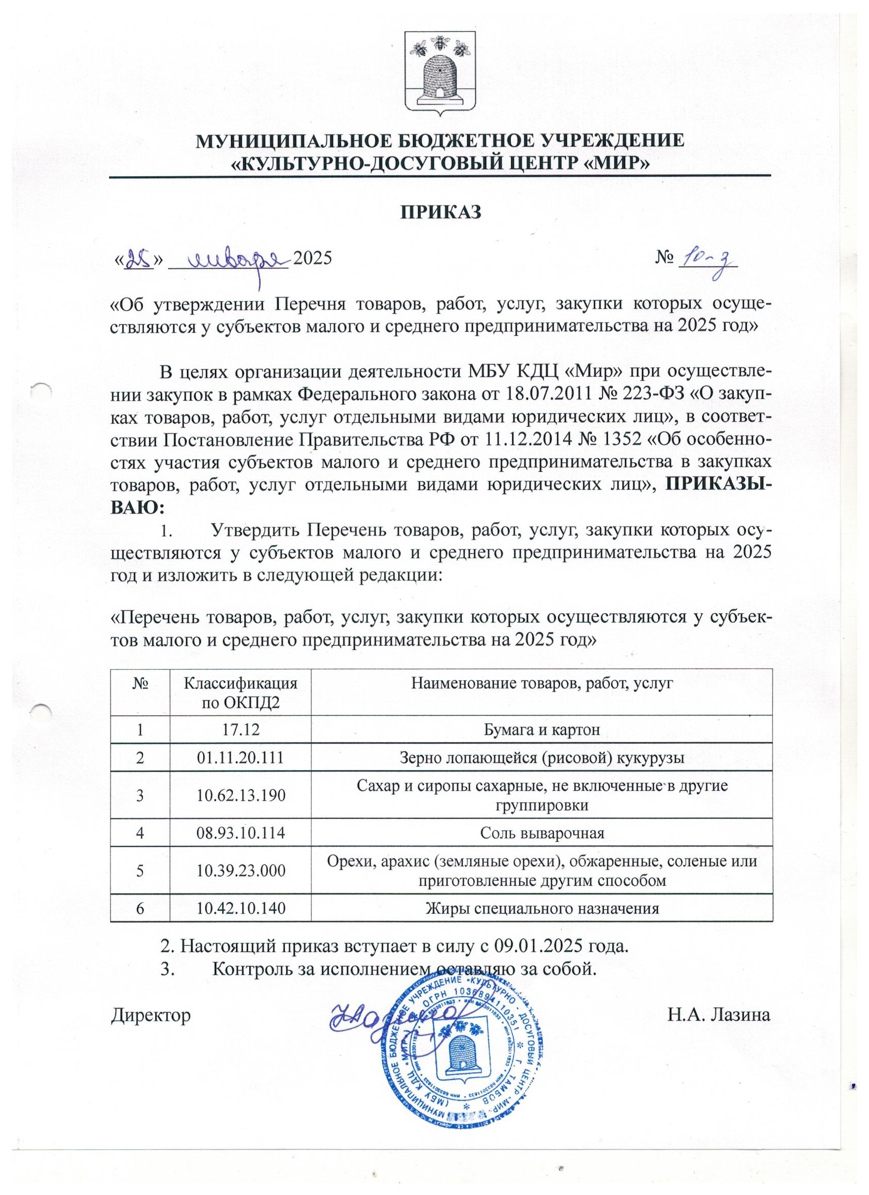 Официальная информация о муниципальном учреждении КДЦ "Мир"