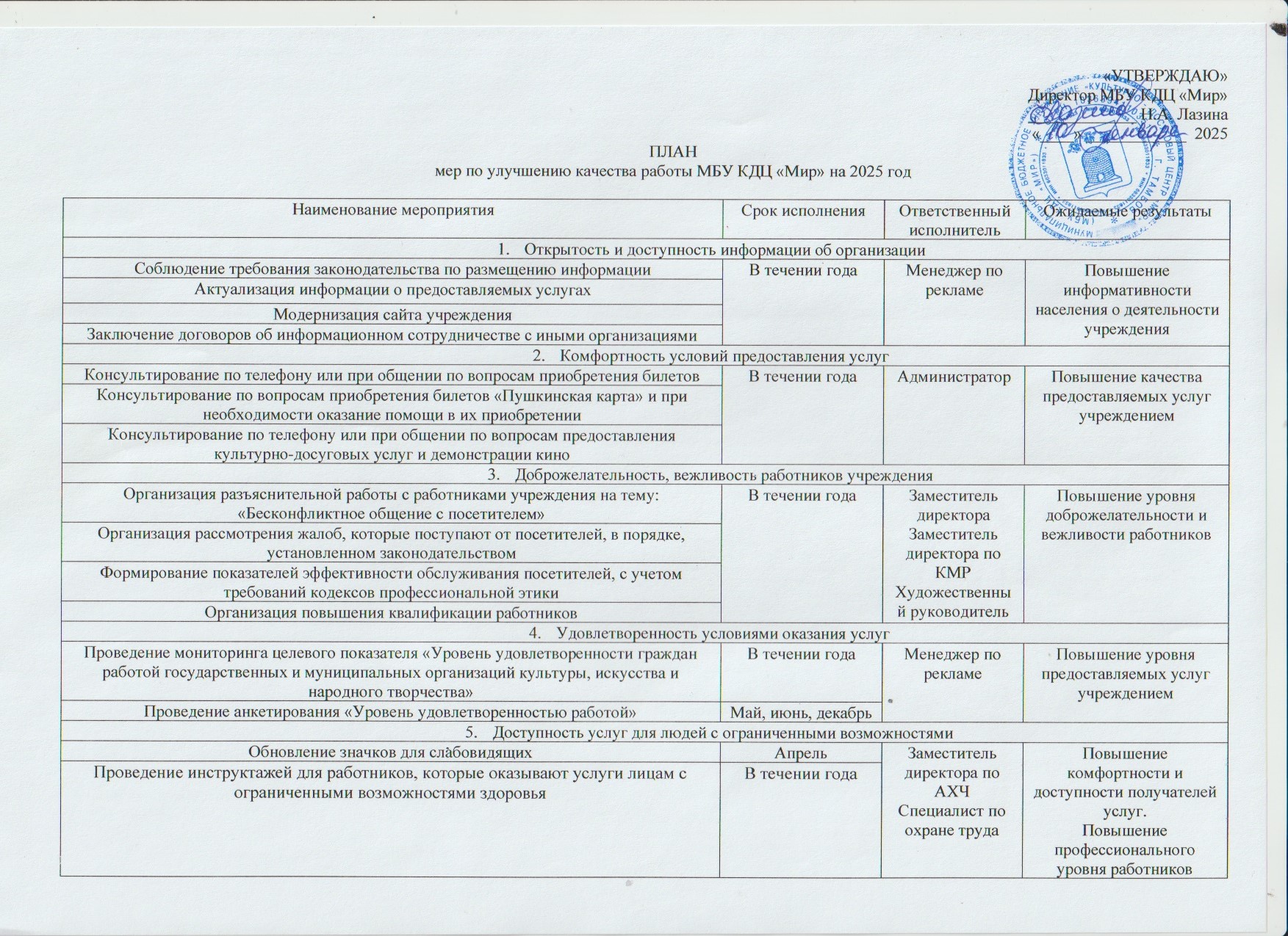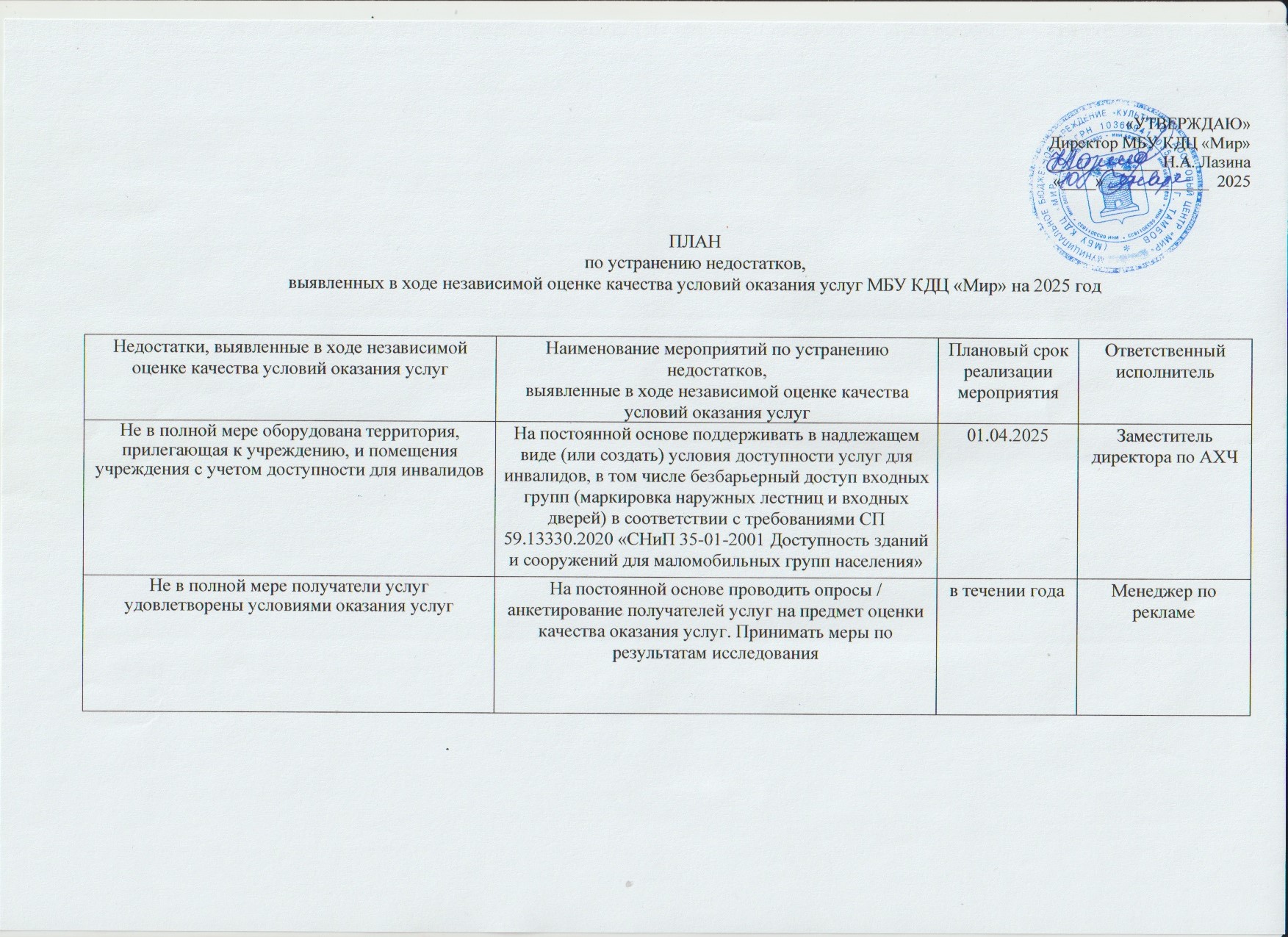 План по устранению недостатков, выявленных в ходе независимой оценки качества услуг 2025