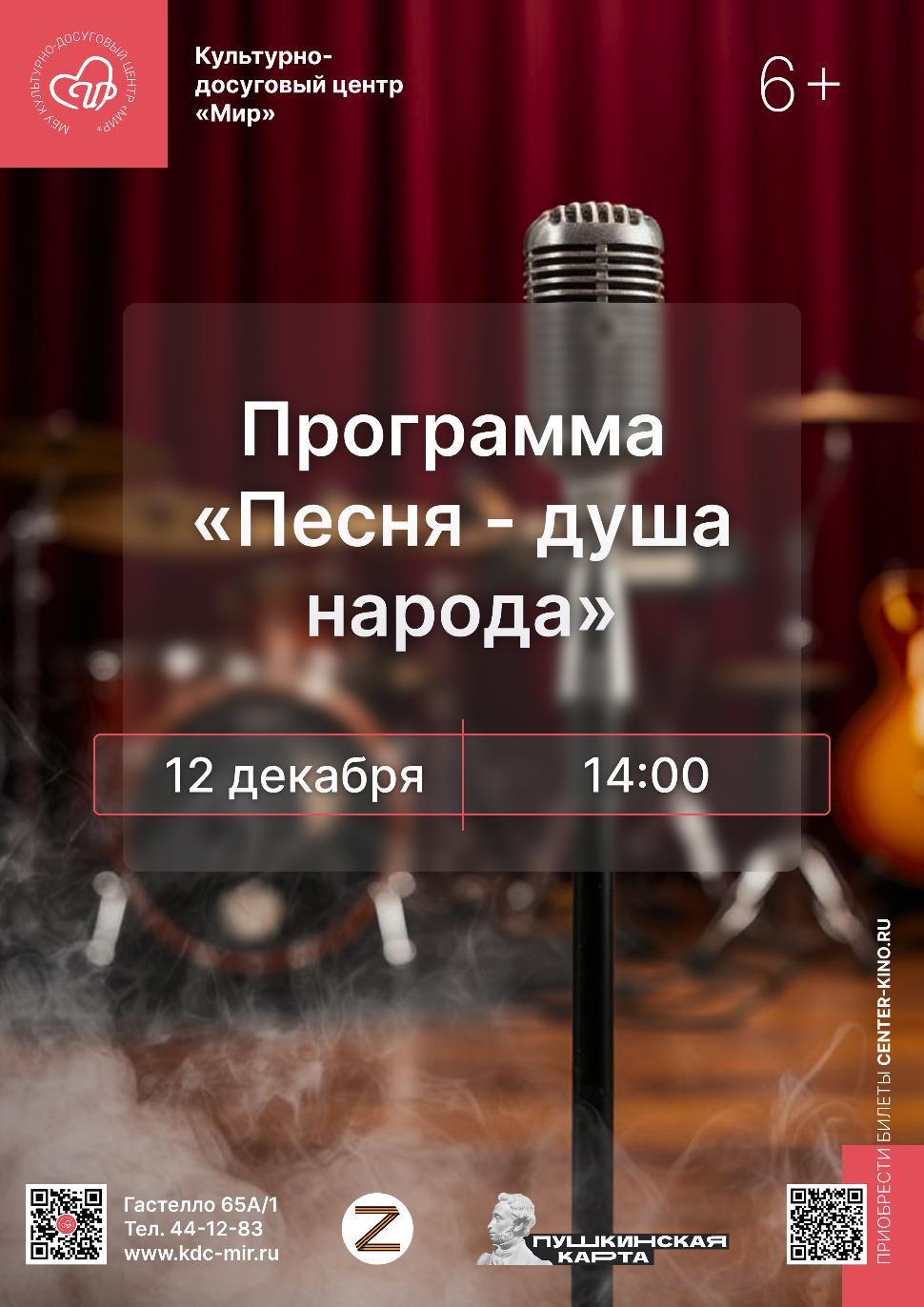 Литературно-музыкальная композиция это увлекательное путешествие в историю народной песни, сопровождаемое выразительными музыкальными произведениями и интересными фактами. Мероприятие создано для того, чтобы познакомить зрителей с богатством и красотой традиционной русской культуры, передаваемых поколениями. В течение программы зрители услышат лучшие образцы старинных русских песен, представленные исполнительскими коллективами, такими как фольклорный ансамбль «Благовест», ансамбль «Ярмарка» и творческие коллективы КДЦ «Мир». Они расскажут о связи музыки и быта наших предков, продемонстрируют разнообразие жанров и стилей традиционного фольклора.