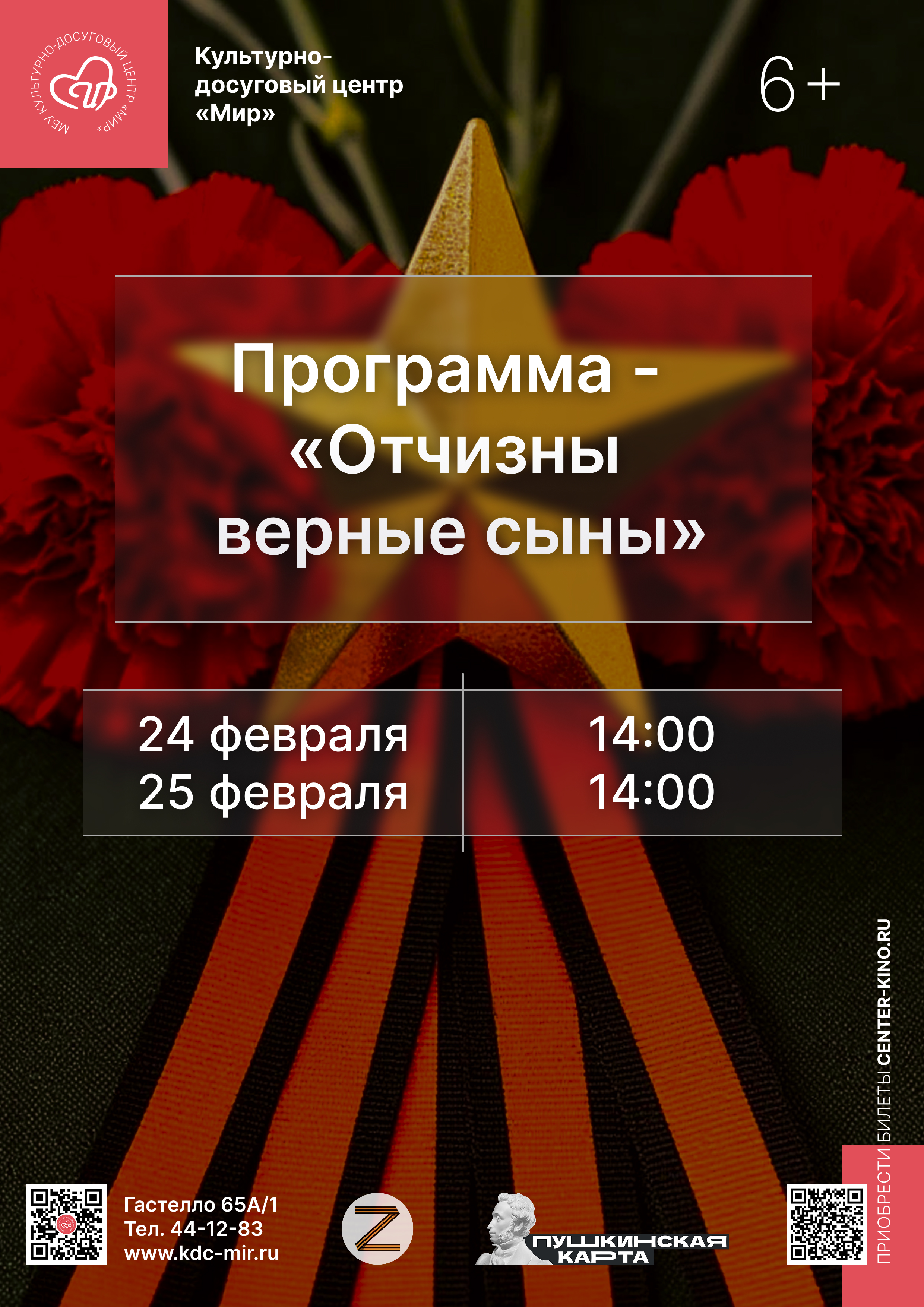 Программа предлагает сташеклассникам откровенный разговор о героях - защитниках Отечества прошлого и настоящего, чьи имена навсегда останутся в памяти народной. В концерте принимают участие творческие коллективы г. Тамбова и МБУ "Культурно-досуговый центр "Мир", среди них - Народный самодеятельный коллектив эстрадного пения «Акцент»,Театр танца «Дивертисмент», детский образцовый коллектив «Студия эстрадного танца «Грация», детский образцовый хореографический ансамбль «Пластилин»,лауреаты Всероссийских и международных инструментальных конкурсов Антон Карасев (гармонь), Алексей Чибисов (скрипка), эстрадно-цирковая студия "Мэйджик пауэр". Яркие танцевальные, вокальные, инструментальные номера, акробатические этюды создадут атмосферу единения и наполнят сердца зрителей гордостью за героев своего Отечества.